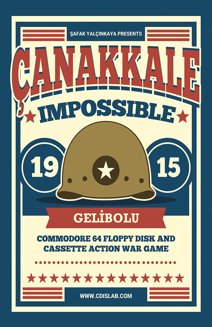 Canakkale Impossible is the first computer game written by Safak Yalcinkaya in his career. Programmed in Basic language for Commodore 64 computers, the game was released on 1986 and distributed by local computer vendors. The game is a simple action game designed to represent the struggle of the Nusret minelayer in Canakkale.